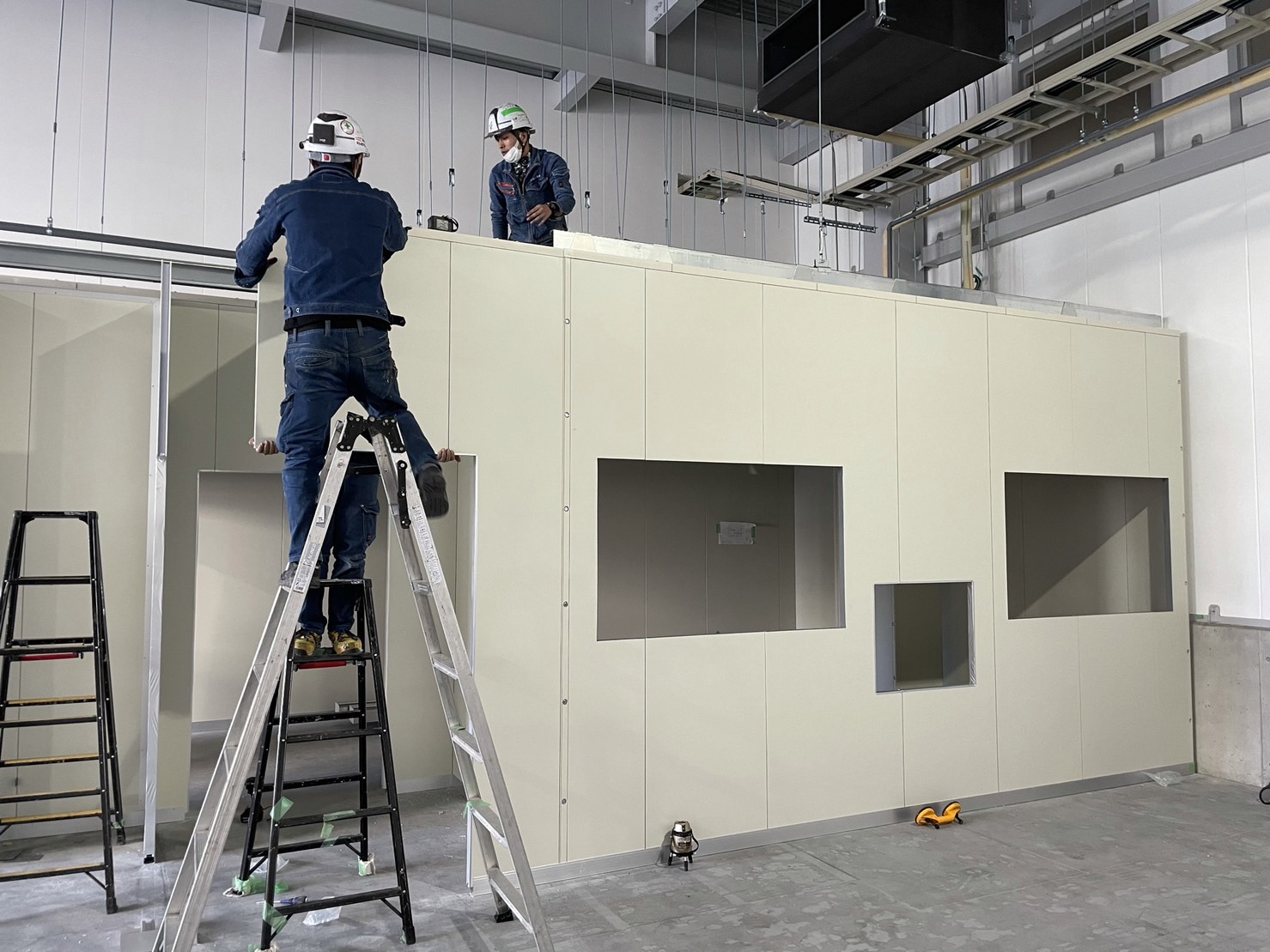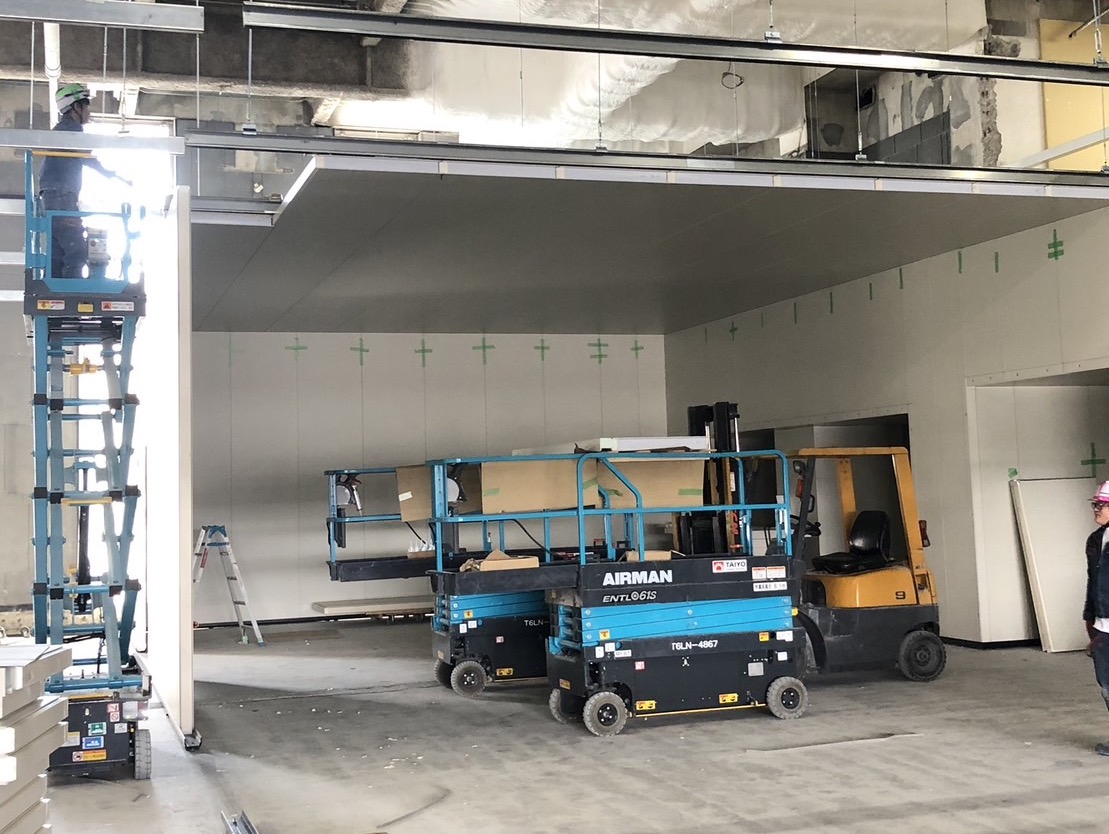 当社は「パネル組立工事」を行っております。パネルは、店舗や工場を快適に最適な状態に保つために重要な役割を果たしています。そういった断熱パネルなどを建物の壁に合わせて組み立てていくのが弊社の業務内容です。