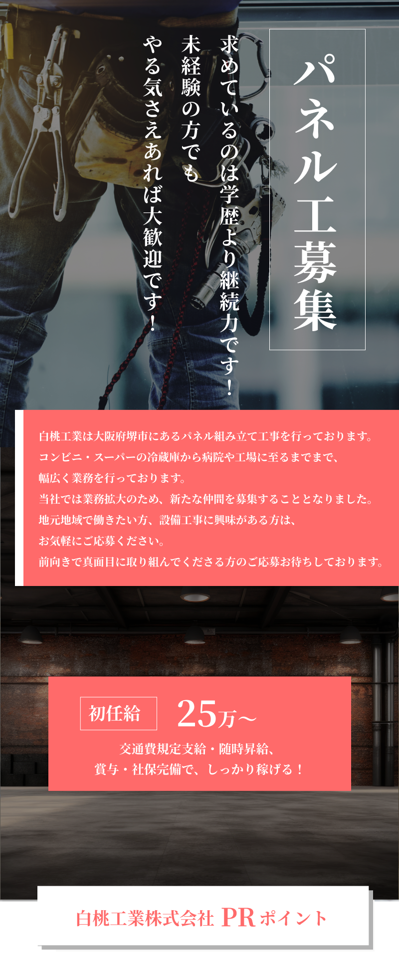 | 採用職種 | パネル組立スタッフ |