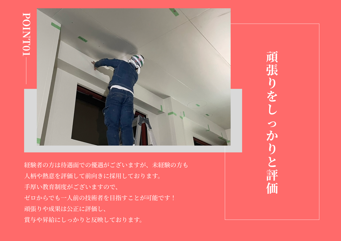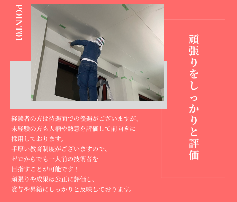 しっかりと研修を行いますので、未経験の方でも一人前の職人になることができます。